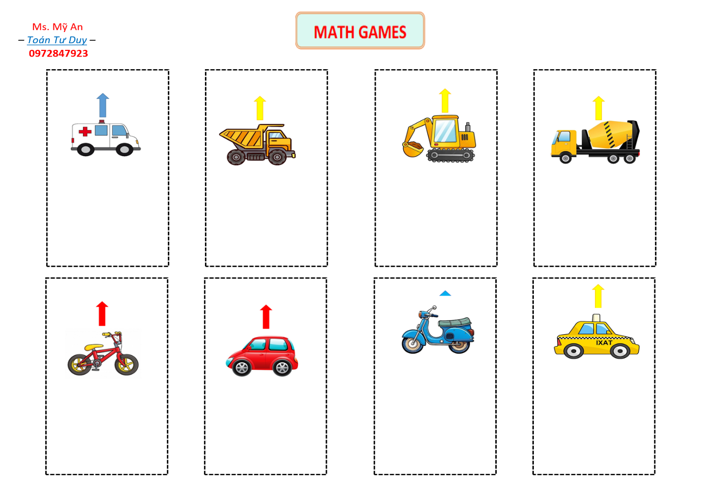 ✅ Bước 2: “Tạo đường đua” in và cắt hình chiếc xe đồ chơi yêu thích của bé (hoặc món đồ bé thích) đặt vào vạch xuất phát (số 0).