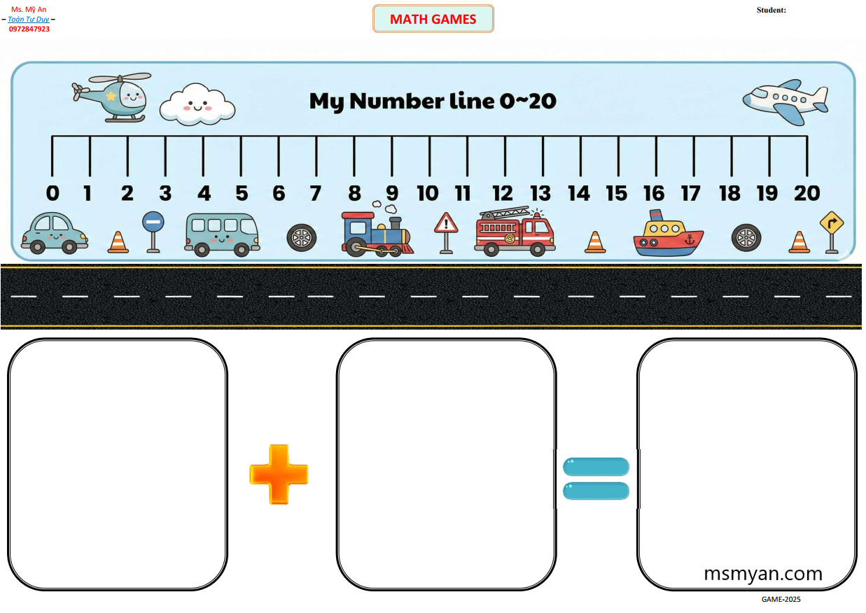 ✅ Bước 1: “Làm trục số” Dùng một tấm bìa carton hoặc giấy A3, vẽ một con đường dài. Chia vạch kẻ và đánh số từ 0 đến 10 (hoặc 20).