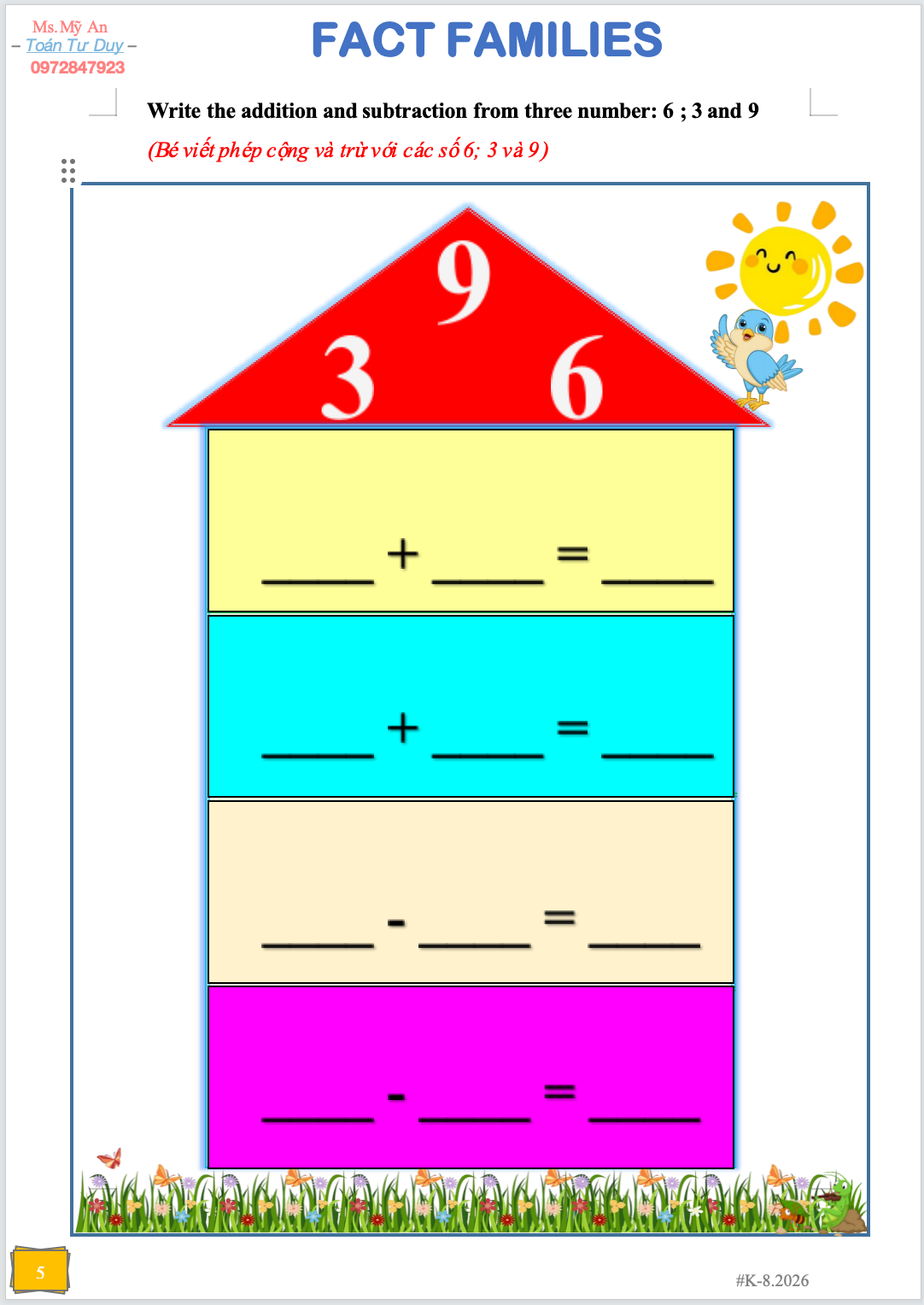 ✅ GIẢI PHÁP: FACT FAMILIES & PART-WHOLE (từ chương trình học Toán mà Cô Mỹ An đang áp dụng)