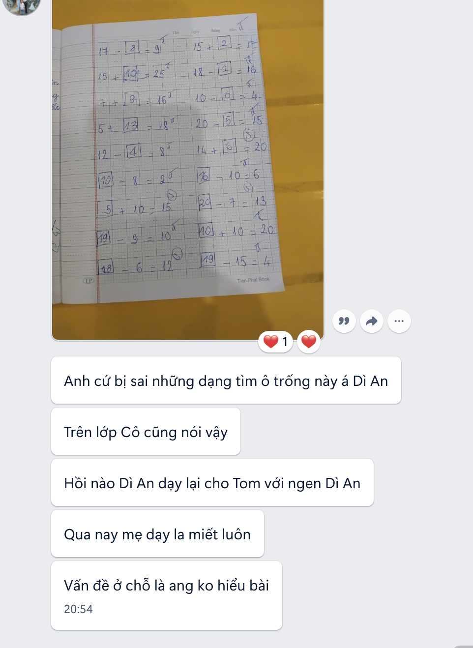 Dạo gần đây có một số Mẹ hỏi Cô Mỹ An: "Tại sao con tính 20 + 30 rất nhanh, nhưng cứ gặp bài điền số vào chỗ trống (___- 4 = 5) là con lại nhầm lẫn, lúc thì cộng, lúc thì trừ?"